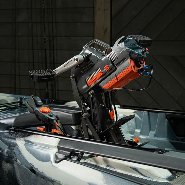 The motor is controlled by a hand remote, allowing you to move forward and reverse and adjust your speed, so you can sit back and relax while the Motordrive does all the work. This combination offers recreational paddlers and anglers the ultimate all-day paddle, pedal, and power adventure.