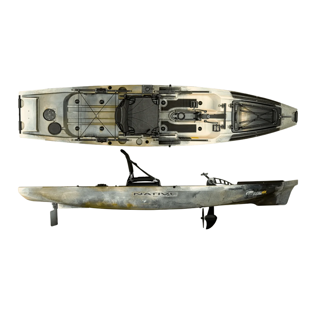 One of our most popular designs of all time, the Slayer Propel 13 has been updated to the max! Meet the new Slayer Propel Max 12.5 with SpringBlade Rudder System. Featuring the proven Propel Pedal Drive and impressive kayak fishing features that will take your experience on the water to the next level. The Max 12.5 specializes in freshwater and saltwater environments, making it an incredibly versatile kayak fishing platform. Key features include: The bow hatch area with a small bucket, a location for battery placement and easy transducer wiring through the integrated hull scupper. Built in transducer mounting plate on the hull so you do not have to drill into your kayak to mount your transducer. An electronic switch mounting plate that is replaceable if you want to change your setup without drilling into your boat. Bow and Stern inserts built in for easy mounting of a Power-Pole Micro Anchor or a motor. Ample storage and groove tracks for accessories.