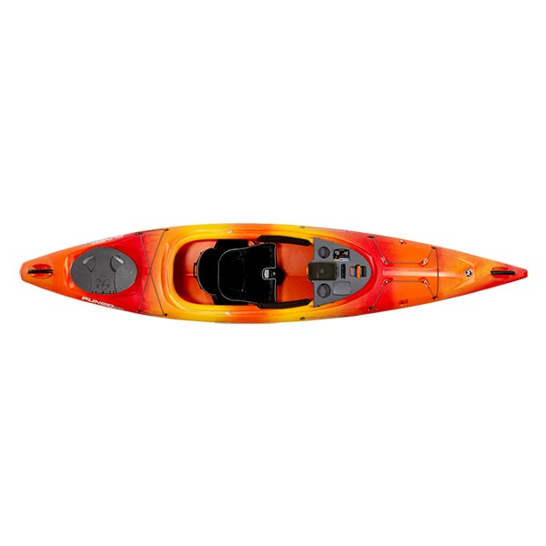The Pungo also integrates the most comprehensive kayak dashboard interface for optimal customization and features. It includes the removable DryTec dry box that allows you to take your valuables with you, two cup holders for your favorite beverage, a recess for the Wilderness Systems Lithium Battery (sold separately), SlideTrax ™ to hold mounts for phones, fishing rods and other accessories, and two mounting platforms for customized accessorizing. A protective and replaceable skid plate, comfortable rigid carry handles, industry-leading storage capabilities, and configurable deck bungee rigging rounds out a robust list of attributes.